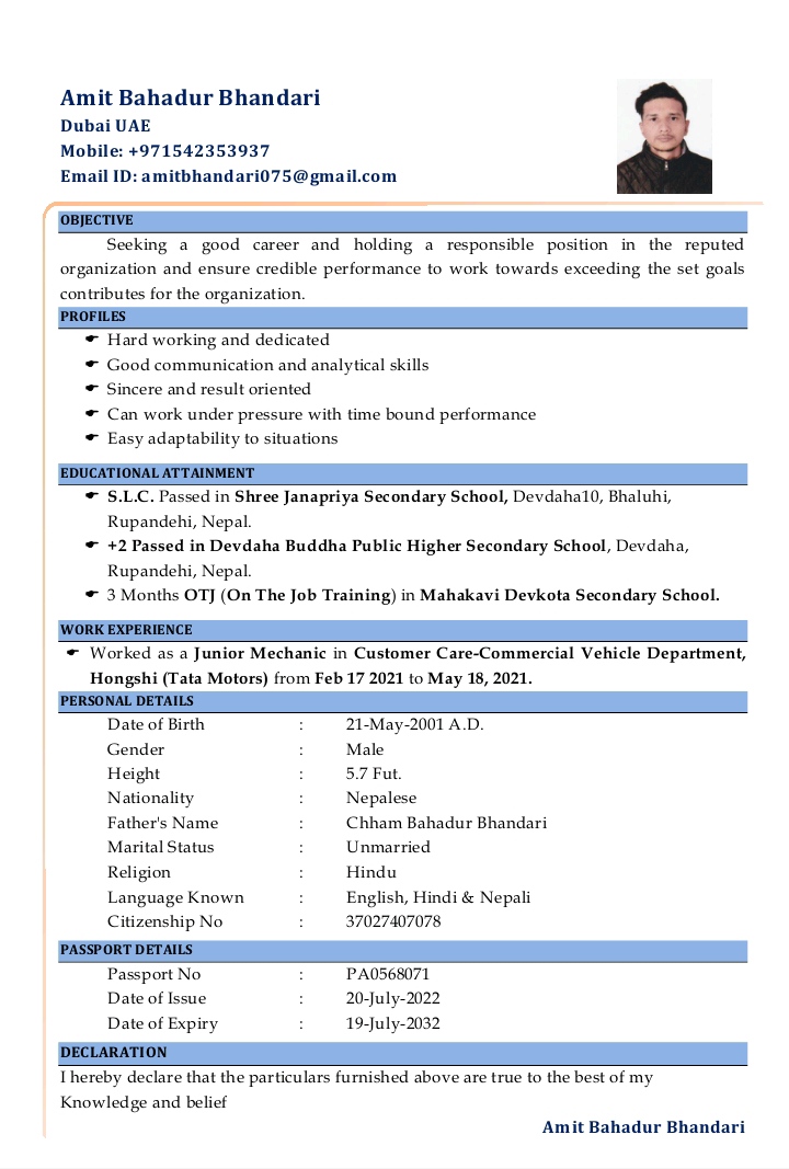 Job Finder Name: Amit Bahadur bhandari