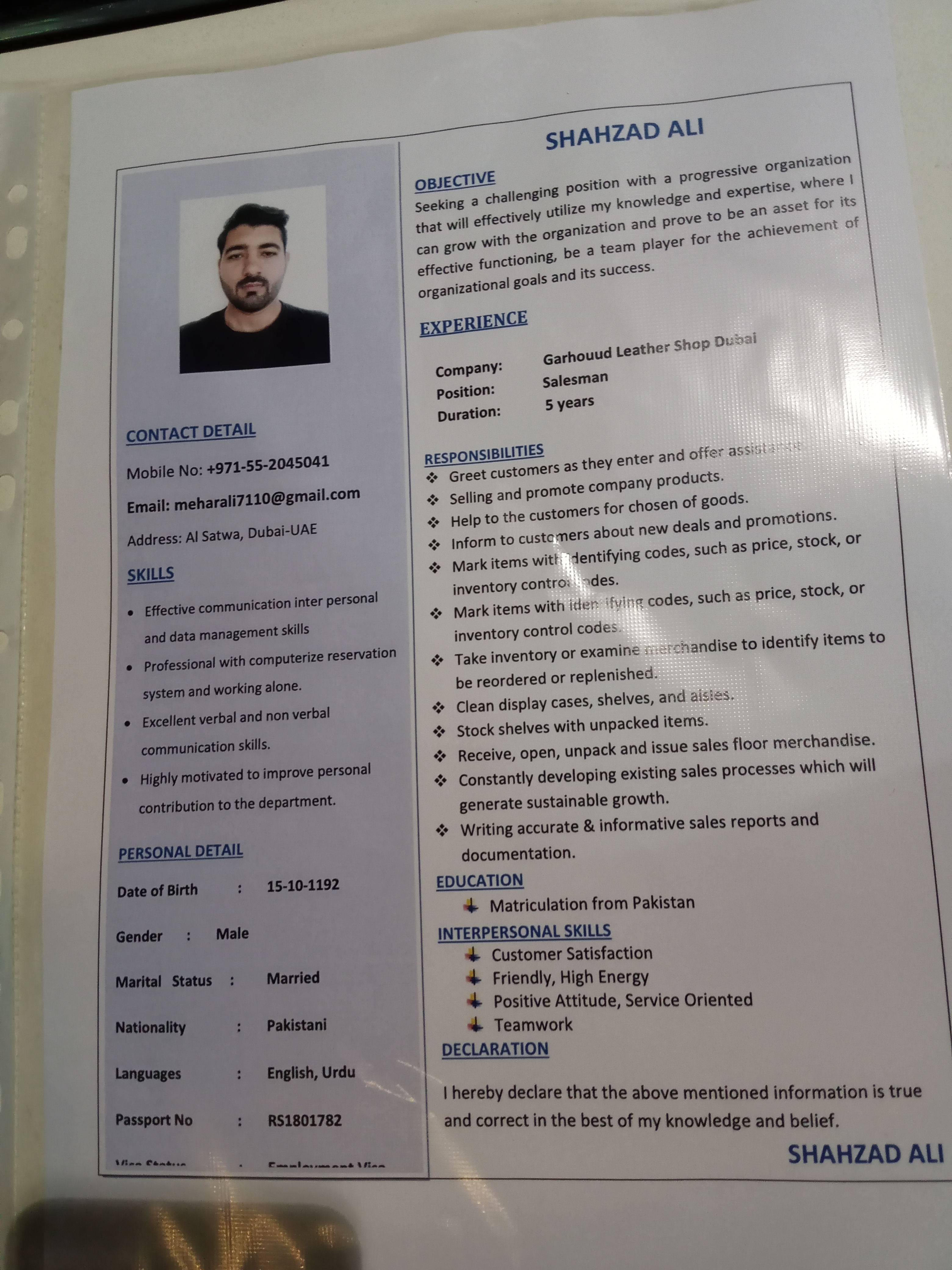 6 year experience in Dubai